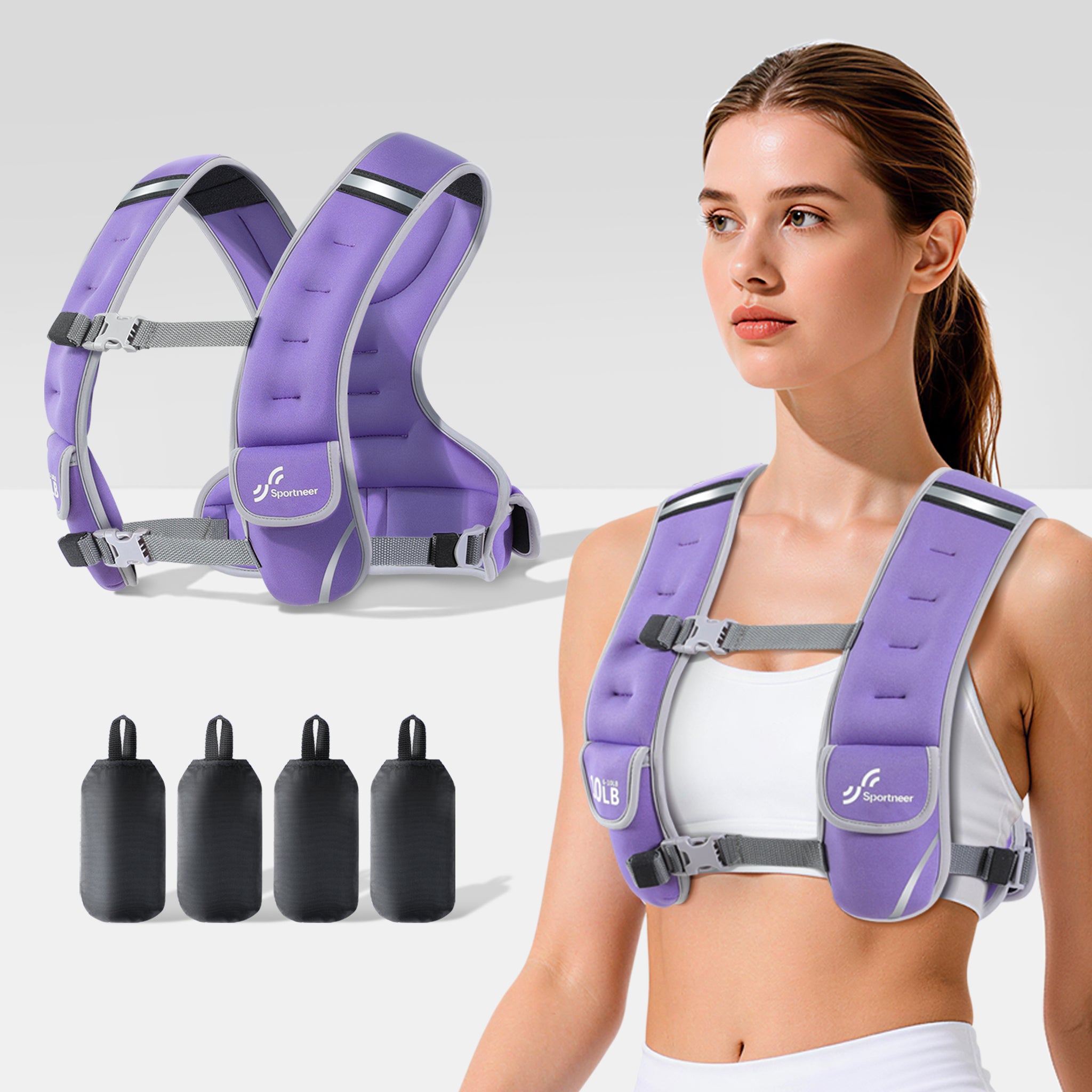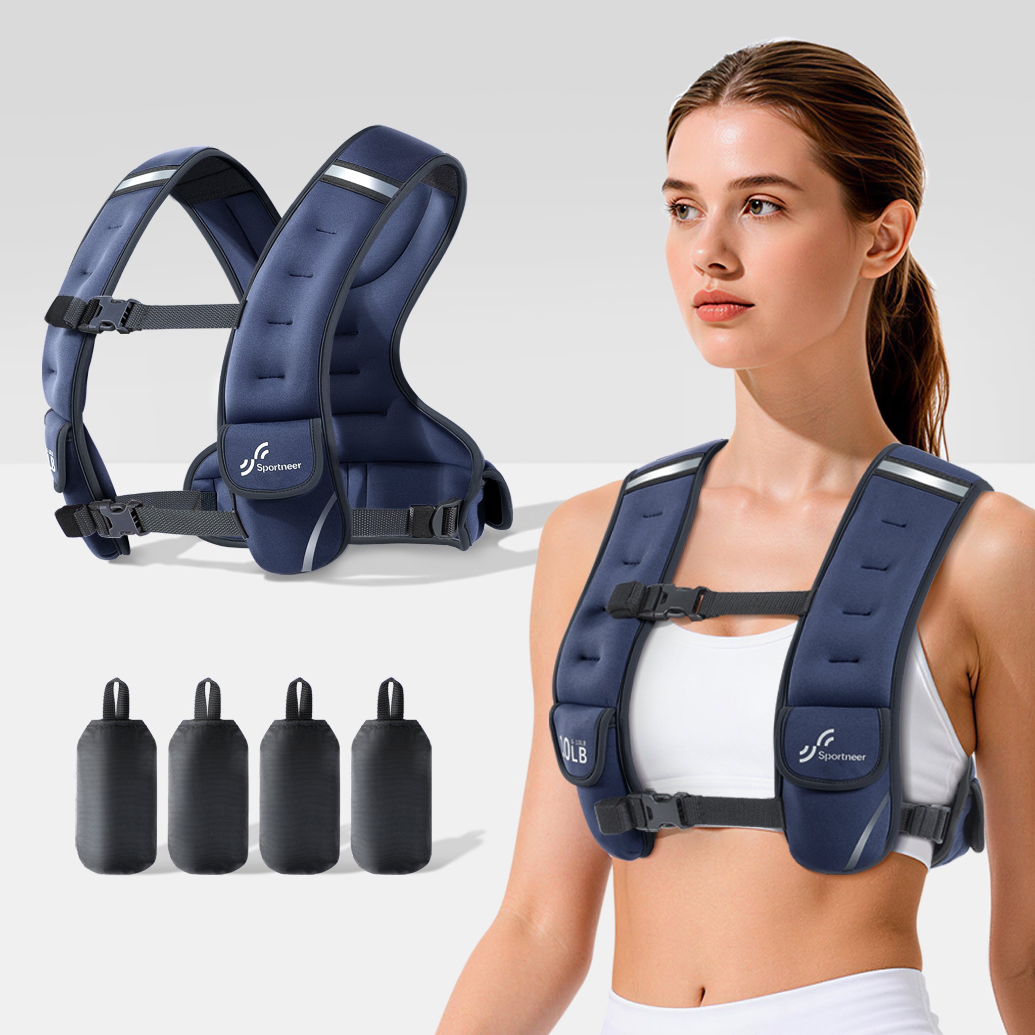 Sportneer Adjustable Weighted Vest Woman: 6-10 lb/10-18 lb Weighted Walking Vest for Women with 8 Weight Packs Fast Adjust Comfortable Weight Vest for Home Gym Running Burn calories Strength Training.